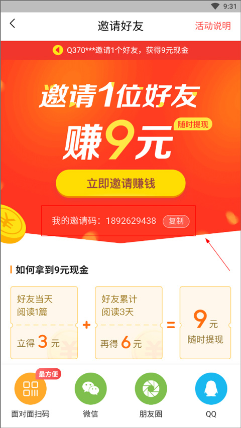 新户下载注册,填写邀请码,做完新手任务就能提现10元。邀请好友,也可以赚钱金币。而且好友阅读,你也可以获得金币。数量多了,每天也有一些钱。