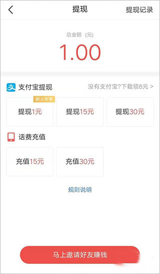 4、如果软件里面有金额的话是可以直接提现到支付宝的;