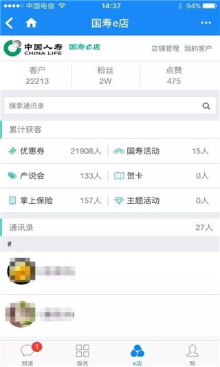 1、首先在本站下载国寿e店最新版,安装完成之后,进入您的店铺,可能需要您做一个开店确认的提醒,界面中的栏目根据各省配置的不同会有不同的店;