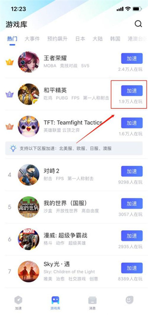 并且拥有非常稳定的游戏加速功能,可以帮助更好的进行游戏加速,还能给玩家提供丰富的日韩手游资讯,让你更好的把握游戏潮流,获得最佳游戏体验。且软件中提供的各种游戏情报,获取更多的游戏新资讯,让你了解更多的游戏玩法,不断的提高自己的游戏技术,同时您也可以将实用的游戏情报分享给自己的好友。新版本优化了一键登录的体验,且开启了暗区突围的新游预约,感兴趣小伙伴不容错过,快来下载体验吧。