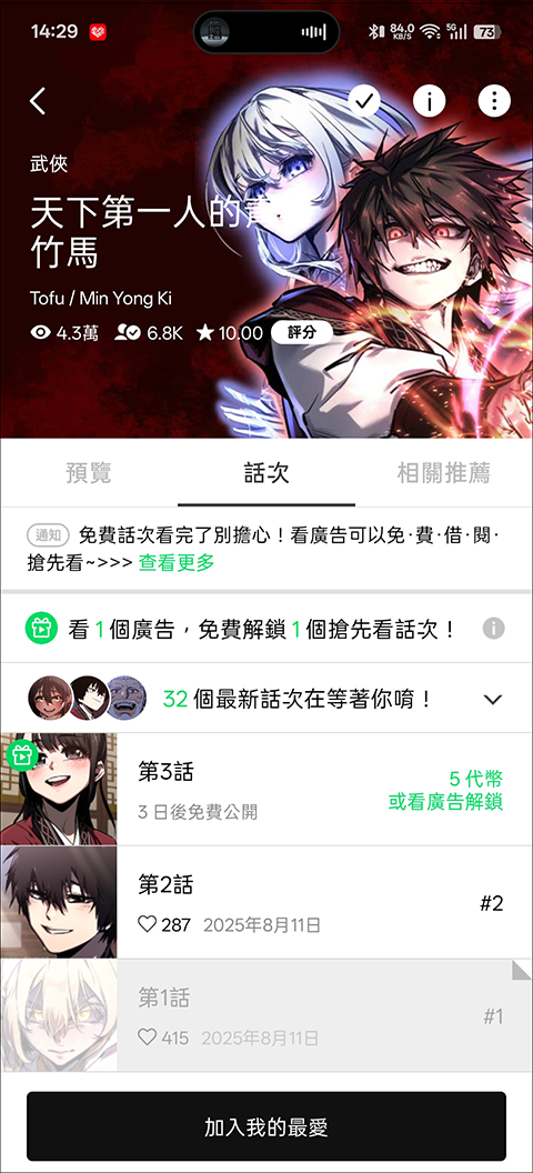 此外,值得一提的是使用Webtoon过程中是不会产生任何的广告和费用,所有上锁的漫画都可以通过等待和观看广告来进行快速解锁,而大部分动漫都是可以免费广告的。而想要提前三天观看的用户也是可以使用软件内签到送的代币来进行观看。