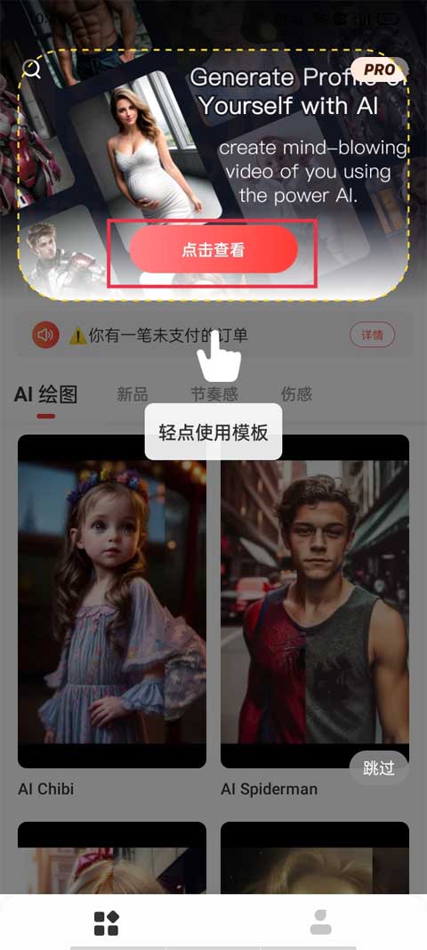 1、打开app之后进入到模版界面,随机选择一个你喜欢的模版作为制作的材料。