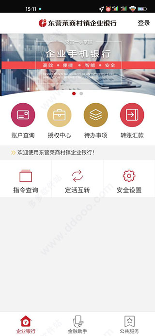 1、在本站下载东营莱商村镇银行手机银行并打开,在首页可以进行账户查询、转账汇款等操作