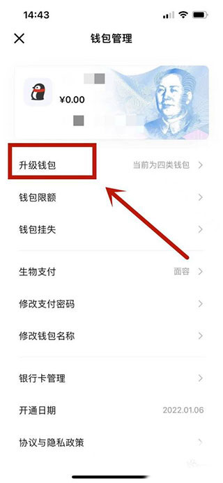 2、点击升级钱包