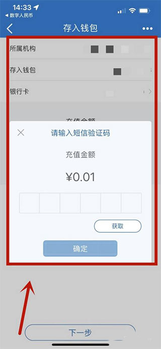 将接收的验证码输入在内,便可以成功充值钱包了。