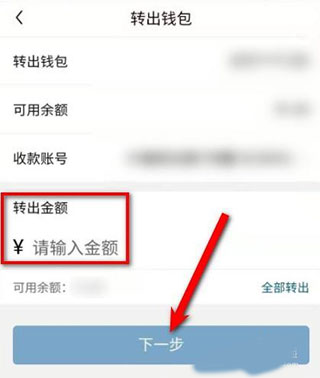 然后,输入要转出钱包的转出金额,点击下一步。