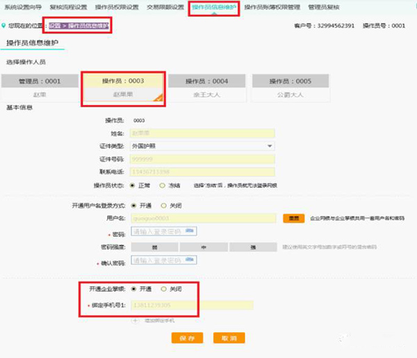 答:企业掌银与企业网银用户名登录方式使用相同登录名和密码信息,该信息由企业网银管理员在“设置->操作员信息维护”中设置。