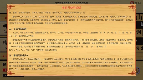2、尺子选择:可自由切换“鲁班尺”与“丁兰尺”,鲁班尺又称“文公尺”,用于房屋宅邸、器具物品的尺寸测量,丁兰尺多用于家庙祠堂的尺寸测量;