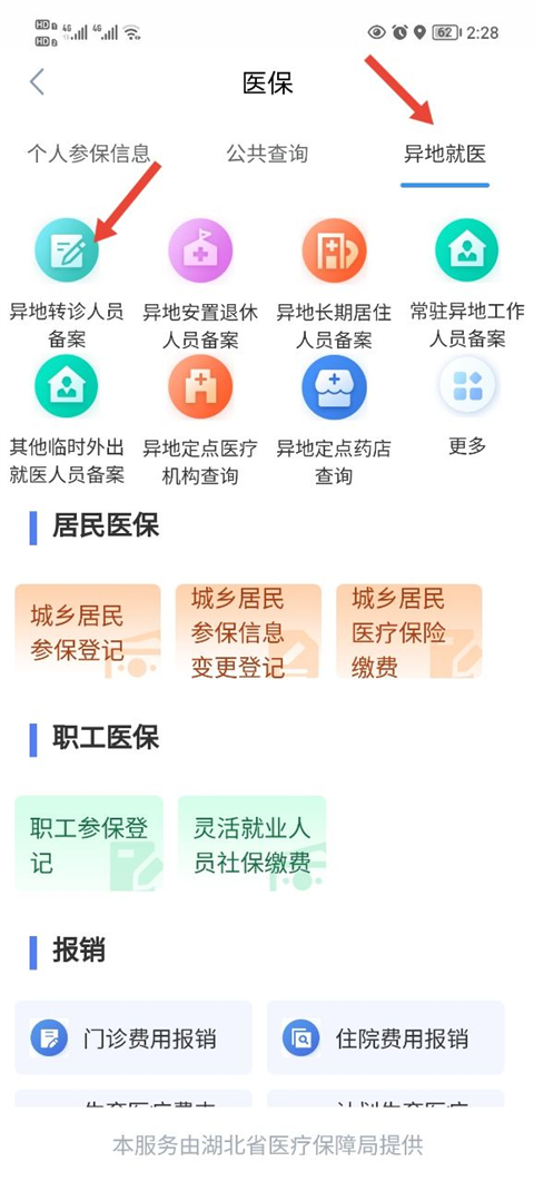 2、然后找到异地就医板块,选择异地转诊人员备案事项。