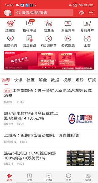 【开户交易】 携手市场主流券商,一键点击轻松开户,闪电交易资金无忧;