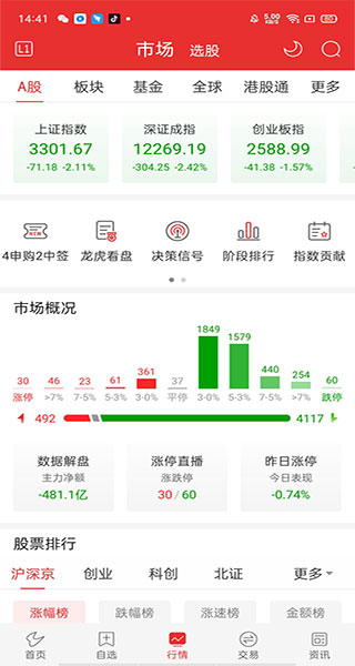 3、提供行情列表、分时走势、K线图、基本面以及各种技术指标线等行情分析功能;