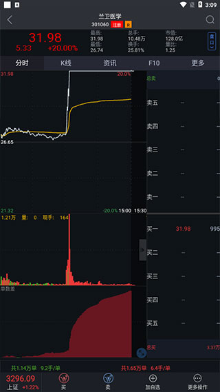4、最后就是股票的买入卖出了,股民可以酌情购买