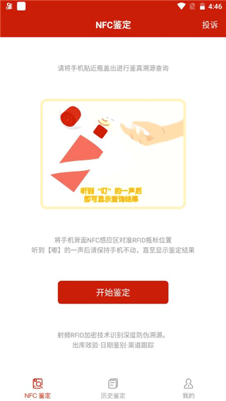 4、如图根据系统指示将手机贴近瓶盖处识别即可