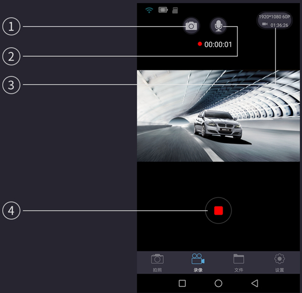 用户打开LuckyCam行车记录仪app后就可以看到操作指南了