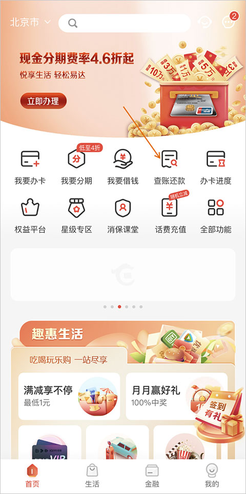 1、打开APP在首页点击“查账还款”