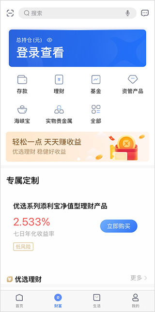 3、海蕴理财:可办理名下借记卡理财产品购买及查询。