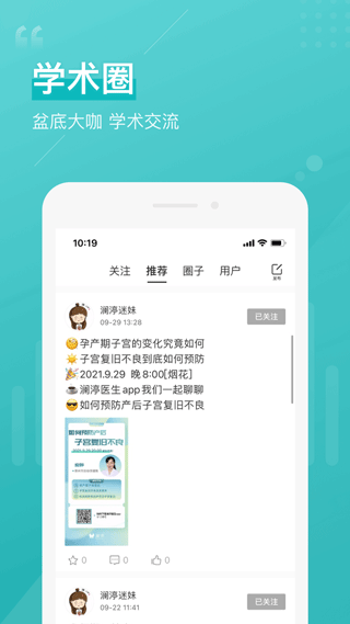 1、澜渟医生是盆底医者的朋友圈,可以关注盆底领域的专家,了解行业动态。