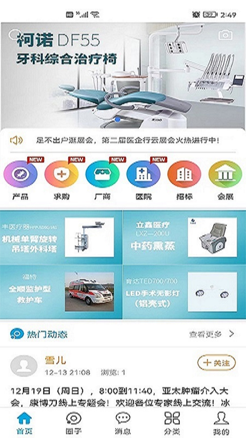医企行厂商端app是一款医疗服务软件,简称医企行app,是专业提供医疗设备的综合平台,提供了各种不同的医疗器械,像医疗耗材、药品和处方甲类、处方乙类等产品,最终目的是为了给医院、企业等用户更加便利的采购服务。除了这些之外,软件还是一个医械信息平台,里面包含了很多为医院、企业、政府采购、行业组织、相关高校等会员提供信息发布、查询、互动并实现行业应用的专业性网络平台。