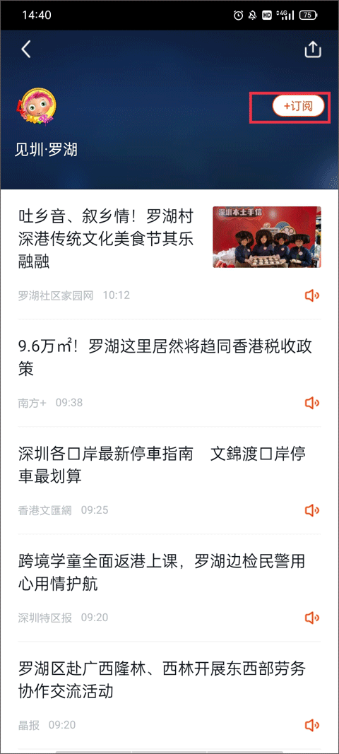 2、选择你想要订阅的见圳号之后,你可以点击订阅号的详情页面,这里会有很多它发布的各种实时新闻;