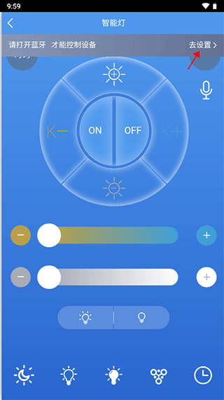 6、进入到智能灯的设置界面,会提示要先打开蓝牙,这时候家居和软件的蓝牙都打开,并且配对成功,就表示连接好了。