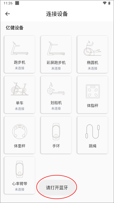 3、点击跑步机的时候提示要先打开蓝牙,所以要先将手机和跑步机上的蓝牙都打开,蓝牙不能离得太远,匹配成功后就表示连接成功了。