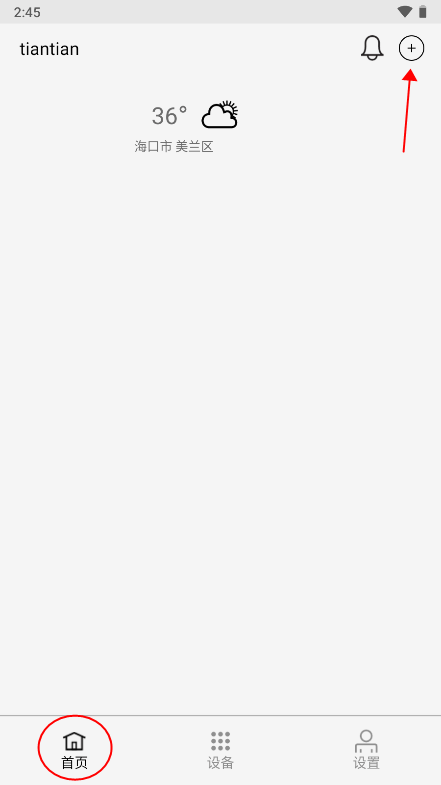 1、打开软件,先创建一个家,创建完之后点击右上角的加号。