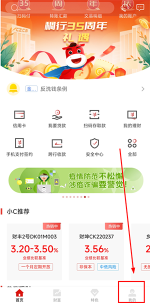(1)点击我的账户 进入“手机银行”首页,点击“我的账户”。