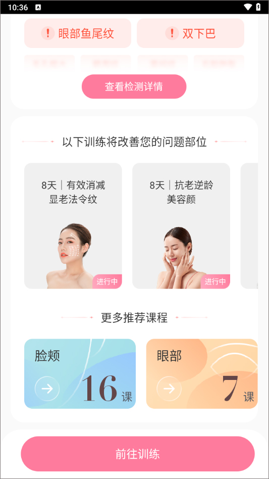 4、软件为大家准备了最全面的免费面部按摩技巧,而且可以根据个人的脸部情况定制专属瑜伽技巧。