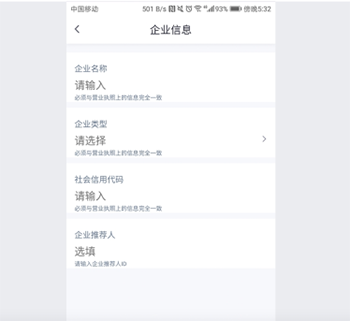 1、点击“我的”页面中的“登记企业信息”功能。