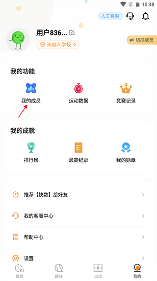 2、个人中心有很多的功能,选择我的功能中的“我的成员”。