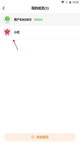 3、页面就会跳转到成员列表页面,我这儿目前只有一个成员,点击“添加成员”。
