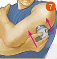 3、敷贴探头,将其放置在胳膊处,三角肌与肱三头肌之间脂肪较多部位,在敷贴之前,要用酒精棉片进行消毒。用力按压然后移开助针器即可。