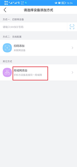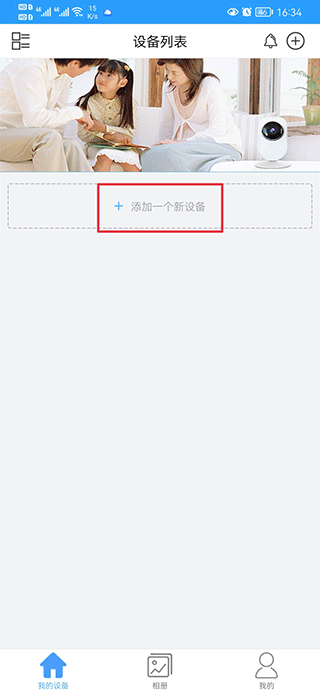 一、打开nvsee官方手机版,在首页中点击添加一个新设备