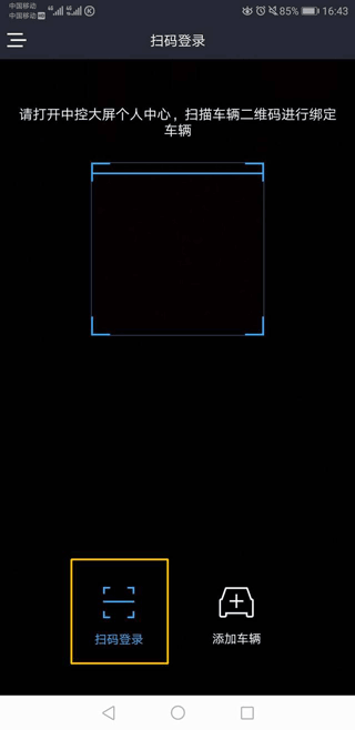 打开AI风行APP【扫一扫】,将APP扫描端口对准车机个人中心二维码,扫描成功即成功登录车机