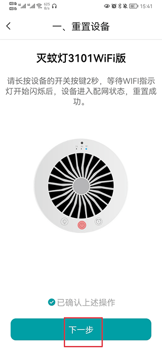 三、按照提示重置设备后,点击下一步