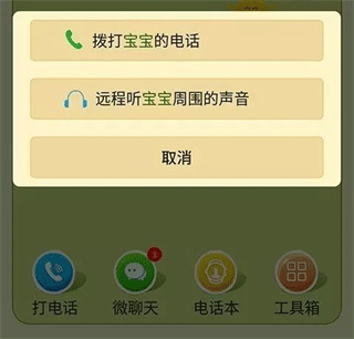 2、双向通话功能:在西瓜皮App主界面点击打电话图标家长就可以拨通小孩的手表。同时还可以选择监听功能选项,家长手机将拨打孩子手表,孩子的手表静音无任何提醒,在不打扰孩子的情况下能随时聆听小孩周边环境声音。