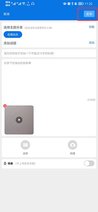 一、打开掌心长兴app,在社区界面中,点击发帖图标