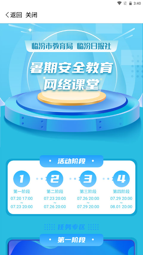 1、打开临汾云app,在首页中点击进入暑期安全教育网络课堂;