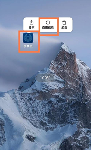 1、长按手机桌面上的优梦思APP,点击应用信息;