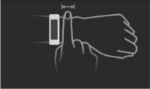 请重新佩戴手表,确保设备能与手腕皮肤舒适贴合(不能太紧也不能太松),不要戴在手腕骨节上,建议戴在手腕骨节以上1到2指(或1.5-2.5cm)距离。如下图所示: