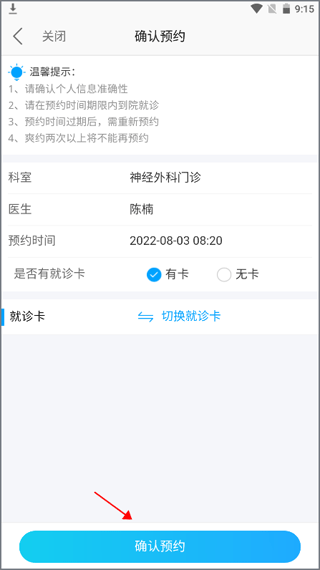 7、选好预约的时间后,选择要就诊的人,最后点击“确认预约”。