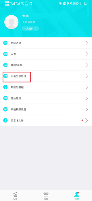 四、将设备连接成功后,在我的界面中点击设备分享管理,将设备分享给其他用户,就可以连接两部手机啦