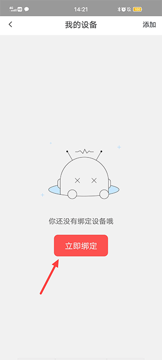 1、打开软件注册登录后,任意点击一个界面,即可弹出一个绑定设备界面,点击“立即绑定”。