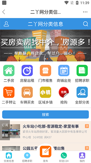 二丫网app是一款集生活、购物、聊天、交友、工作、资讯为一体的手机软件,定位于公主岭的生活,打造真实、丰富、愉悦的网上环境。作为本地最具成长性的生活消费分享的平台,最具影响力的网络服务品牌之一,为100多万公主岭人提供生活交流、消费分享、购物指导等实用服务,通过这个软件让用户快乐追求更高质量、高效率的生活。用户进入软件可以随意的进行选择,获得需要的服务内容,解决你的使用需求,让用户可以快速地进行使用,非常方便。软件把当地的生活信息全部展示在平台里,在线能够清楚地进行查看,让用户在使用的过程中获得更多帮助。有了二丫网软件,用户在家就可以获得更多的服务,你可以实时进行购物,各种生活用品全部展示在平台里,快速地进行购买。用户也可以通过平台呼叫家政上门进行服务,解决你的日常生活问题,提高用户生活质量。欢迎有需要的朋友下载体验。
