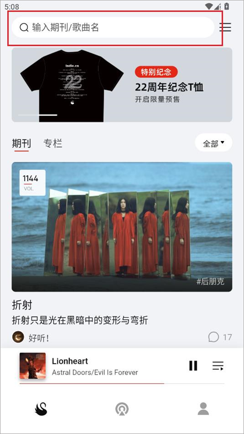 3、在首页搜索框输入歌曲名或期刊关键词,快速定位目标音乐。