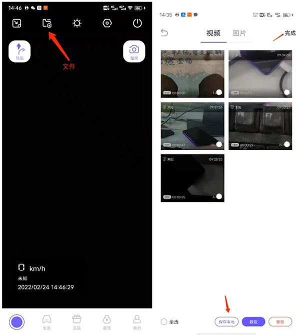 方法一:打开录制页面>左上角文件图标进入文件管理页面,点击右,上角编。辑按钮,选择想要导出的视频或图片,点击保存本地,即可在相册进行查看、分享。