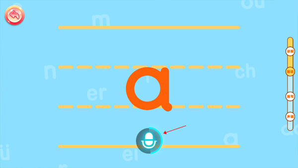 3、朗读拼音a,只要按住中间的麦克风图标朗读就可以了,如果读完了就松手。