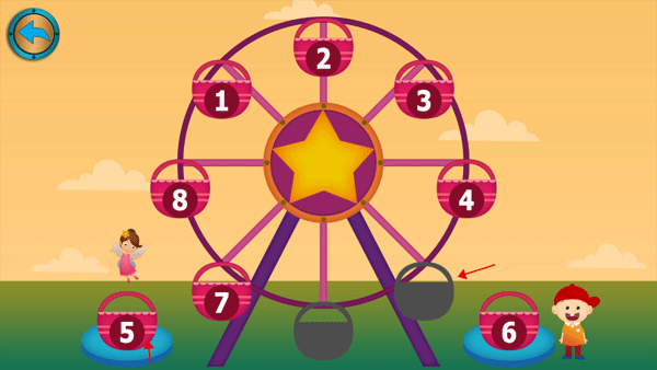 7、第五个模块是一个摩天轮,每一个电缆上面都一个数字,要思考每个数字前后相隔的是哪一个数字,然后将电缆放到正确位置上面。