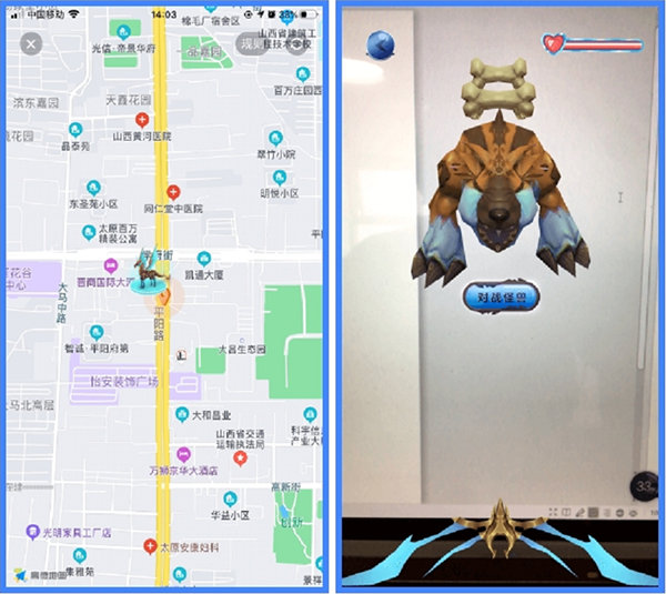 A、游戏获得:点击地图中游戏按钮(下方图示按钮)即可进入打怪界面,点击“ 对战怪兽’,开启您的AR游戏之旅,打倒怪兽即可获得丰厚奖品。
