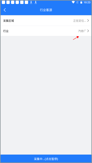 4、点击行业客源,就是选择相应的行业来找资源,然后“开始采集”。